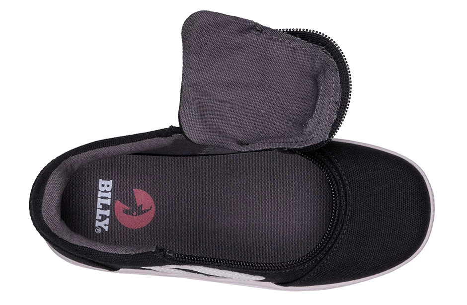 Inspired by a core-skate look, the Black/White BILLY CS Sneaker Low Tops are sure to deliver. These trending kicks embrace nostalgia, yet remain true to current style. Coming with functional laces for a custom fit, removable insoles for added depth, and a wraparound zipper for unmatched convenience, you’re going to feel good when you Step In!