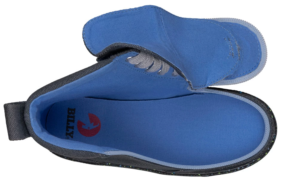 A classic silhouette with some added speckles thrown in, your kiddo is going to love their Charcoal/Blue Speckle BILLY Classic Lace High Tops. This style features the full wrap zipper allowing the wearer unobstructed entry. Step in, zip up, and get after the day!