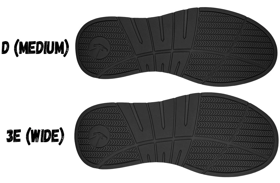 Coming in a D-width (Men’s medium) and a 3E-width (Men’s wide), the sizes start at a 7 US Men’s and go to a 14 US Men’s, with 1/2 sizes through size 12. Enjoy!