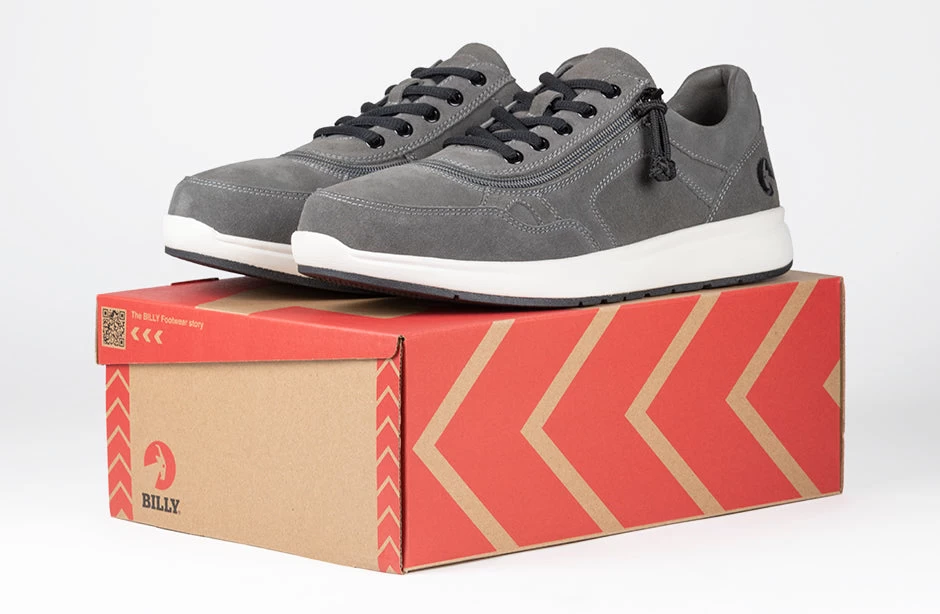 You cannot go wrong with casual men’s fashion. These stylish Men’s Grey Suede BILLY Comfort Joggers tout a wraparound zipper making donning and doffing simple. No more stuffing your feet into shoes — Step In!  and go about your day. These real suede leather shoes are a must for your wardrobe.Â