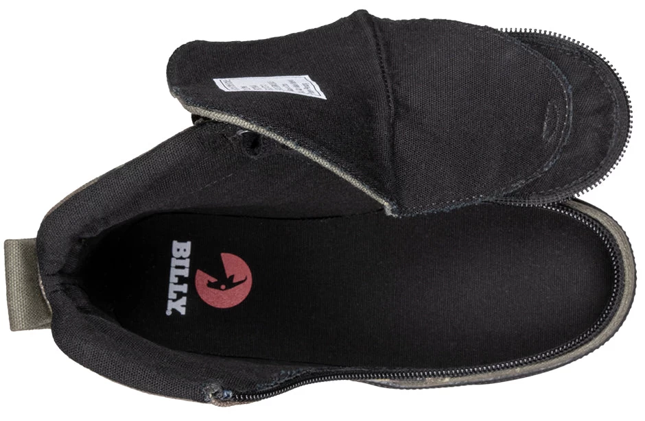 The Olive Camo BILLY Street High Tops embody trending fashion with functional appeal. The camo panels coupled with the adjacent solid panels make for a complimentary match. The style lines pay homage to retro silhouettes; yet, remain spot-on with current designs. The padded collar adds extra comfort, while the wraparound zipper delivers unmatched convenience. Your kiddos will want these kicks in their collection.